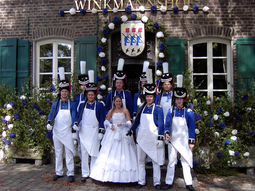 Als Untergruppe der Sappeure haben sich die Jungsappeure im Jahre 1997 zum Schützenfest gegründet. Gründungsmitglieder waren die damals noch sogenannten "Sappeur-Anwärter" Lars Budweg, Florian Lüttges und Manuel Kölker. Als Voraussetzung für eine Mitgliedschaft galt damals der Grundsatz, bereits familiär bei den Sappeuren verankert zu sein. Das Wappen der Jungsappeure ist an das der Sappeure angelegt. Anstatt des Bierhumpens trägt der mittlere Sappeur allerdings eine Nuckel-Babyflasche. Schon bald sollte die illustre Gruppe Kultcharakter erhalten, denn mit ihren legendären Partys wurde der Grundstein gelegt. Die erste Party fand im Linner Kleingartenverein neben Phillips statt. Obwohl nur für rund 100 Gäste zugelassen, quetschten sich fast 250 Gäste in die Location. Grund war das einfache, aber beliebte Konzept: Einmal zahlen, immer saufen! Damals noch als Gäste dabei, wurde die nächste Generation Jungsappeure in die Mitte geholt: Moritz Bosch, Marius Kölker und Matze Lüttges machten aus dem Trio ein Sextett. Es folgte 1999 eine nächste Party, diesmal in der lauschigen Museumsscheune in Linn. Mit dem altbewährten Programm gelang es ohne Probleme, den Saal zu füllen - es mussten sogar Gäste draußen bleiben, weil die Hütte einfach zu voll war. Püntklich zum Schützenfest 2000 wurde mit Julian Ferlings ein neuer Jungsappeur angeworben. Erst nach dem Schützenfest kam auch sein Bruder Leif dazu, der zu dem Zeitpunkt seinem Studium in London nachging. Es folgten Parties noch und nöcher, traditionell am Karnevalsfreitag, aber auch mal im Oktober mit köstlichem Hofbräu-Oktoberfestbier. Der nächste Neuzugang war Patrick Kuhlmann aus Hüls. Hüls ist ein sozialer Brennpunkt Krefelds, weswegen die Jungsappeure, ähnlich wie die Sappeure schon bei Vater Lothar, ihre soziale Ader unterstrichen und ihn quasi um ihn von der Straße wegzubekommen, aufnahmen. ;-) Seit Weihnachten 2003 betätigen sich die Jungsappeure auf dem Linner Weihnachtsmarkt und verkaufen dort Spielzeug zugunsten der Aktion Teddybär, die sich um krebskranke Kinder kümmert. im November 2005 gab es schließlich ein Novum. Denn indem man sich Jörg Illies in den Stall holte, wurde auch ein bis dahin ungeschriebenes Gesetz gebrochen: Bis zu diesem Zeitpunkt konnte nur Jungsappeur werden, wer auch schon das Sappeur-Gen in sich trug. Heißt, wessen Vater ebenfalls Sappeur ist. Jörg war clever, denn er ergriff die einzige wohl einigermaßen legitime Möglichkeit: eine Sappeur-Tochter, Verena Dießner. Hah, gut gemacht. Nach einer kurzen Kennenlern-Phase bei den Sappeuren und dem Bestehen des Aufnahme-Test war er dabei. Gleiches dachte sich Jahre später auch Thomas Deselari, denn er bediente sich im gleichen Hause und schnappte sich Miriam. Mehr Töchter hat Ronny zurzeit leider nicht, so dass auch diese Quelle versiegt ist. Tja, und dann war da noch Alex Koschade. Ein Barde mit mächtiger Statur und von großem Herzen. Einer, den man mögen muss. Einer, für den es sich lohnt, noch einmal an den Gesetzestexten zu schrauben. Und einer, der Ende 2009 zusammen mit Thomas in das Reich der Mitte aufgenommen wurde. Erfreut nahmen die Jungsappeure am 8. Juli 2011 ein weiteres Mitglied auf. Jungjungsappeur Noah Illies bereichert seitdem die Truppe. Er ist der erste Sappeur der dritten Generation. Ihm folgte wenig später der nächste nach, Lenn Deselaers. Seit Januar 2013 verzeichnen die Jungsappeure zudem einen Aspiranten. Florian Ewert bewirbt sich aufopferungsvoll um die Aufnahme in die elitäre Runde. |
