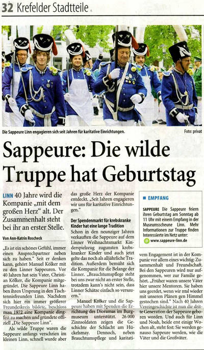 40 Jahre Sappeure Linn in: WZ 29.06.2012
